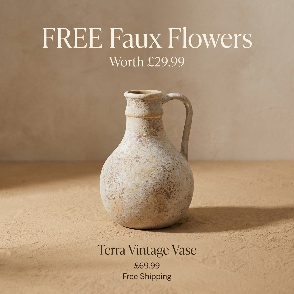 The Terra Vintage Vase Edit is a complete, ready-to-style statement piece designed to bring warmth, texture, and effortless character into your space.