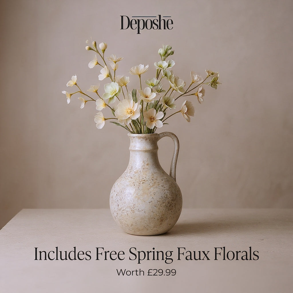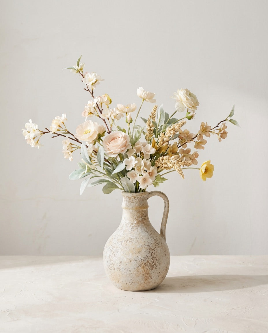Each edit pairs our sculptural Terra Vintage ceramic vase with a complementary faux floral arrangement, carefully selected to enhance the vase’s organic form and earthy finish.