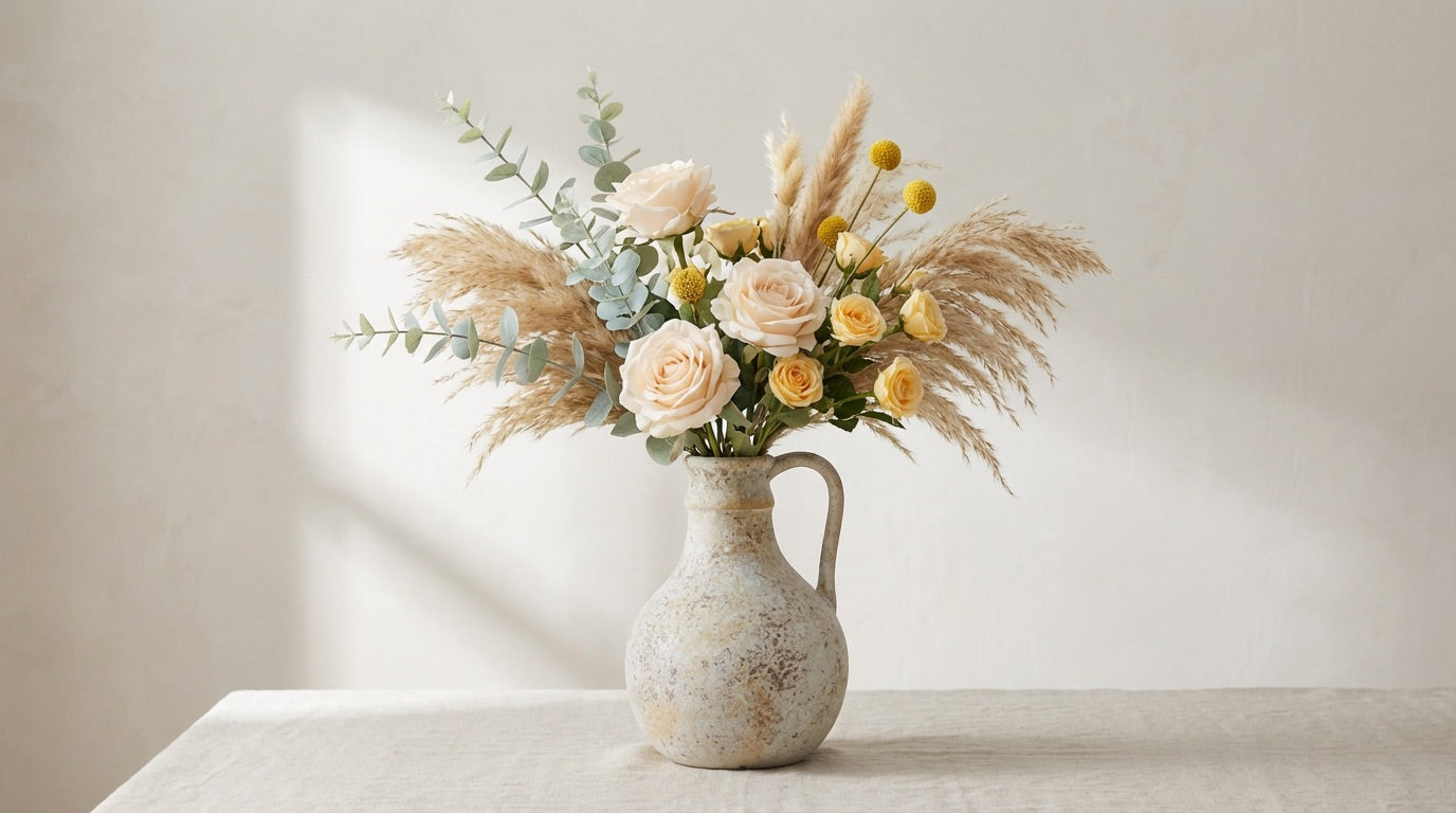 Faux Floral Arrangement – included free, curated to suit the vase’s natural tones
