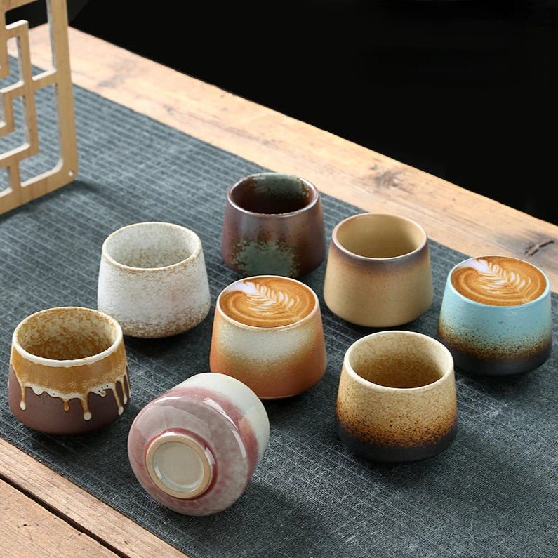 Hand-glazed stoneware cups with softly rounded forms and tactile, wabi-sabi finishes. Perfect for espresso, tea, sake or small pours, each cup is unique thanks to reactive glazes and hand-finishing.