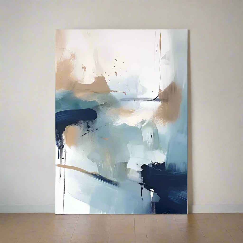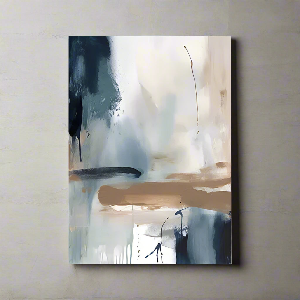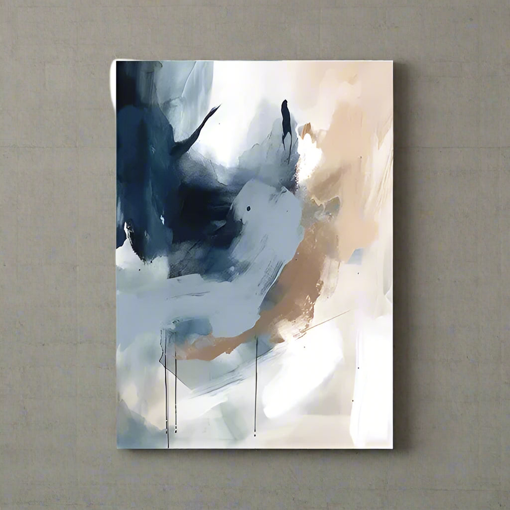 Add a calming statement to your space with this modern abstract art print, blending cool navy blues, soft neutrals and expressive brushstrokes. Perfect for creating a serene yet striking focal point in living rooms, bedrooms or offices.
